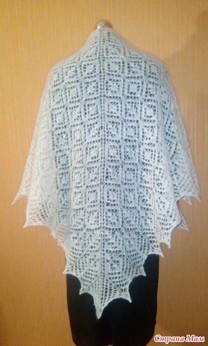 Шаль "Ярославна" по описанию Ольги Ростовской. Пряжа козий пух на швейной нитке.