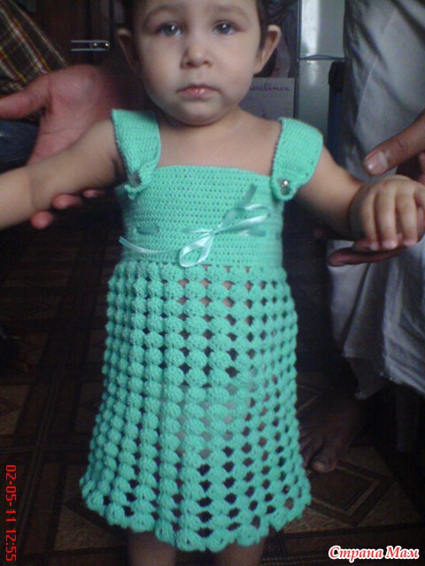 вяжем дырочки для ленточки: 5 ссн 2 вп, 5 ссн, 2 вп, 5ссн,2 вп - и так до конца