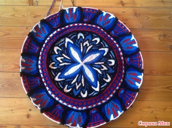 84 ряда, мудрю с добавкой белого цвета, ряд вяжу одновременно двумя цветами