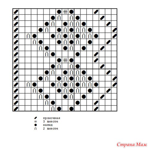 Набираем 13 петель. В первом ряду я вязала так - 2лиц, нак, 1 лиц, нак, 2 вместе лиц, 6 лиц. На петли , которые остаются в конце ряда ,не обращайте внимание. Будет 1 петелька лишняя. Но потом всё выравнивается и совпадает. Когда провяжите всю схему, что на фото, повтор начинайте с 3-го ряда. И ещё следите за 9-м рядом. На схеме опечатка.И в описании тоже.