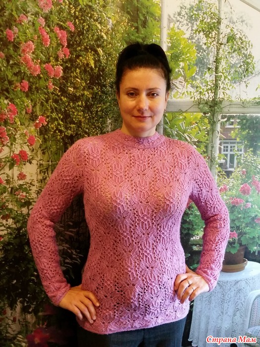Теперь про прибавки/убавки-в японской схеме их нет, приталивание происходит за счёт смены номера спиц...Если надо, напишите e-mail, скину японское описание, у меня 2-бабочки, обе вязала, второй правда нет фото