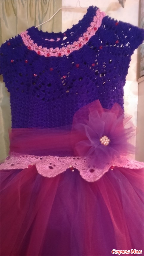 Связала для внучатой племянницы (9 лет)в подарок, верх подобрала схему в инете, юбка в пол, из фатина, заказывала на Али 2 бобины по 90 метров, ширина около 15см,ушли полностью. Юбка очень пышная.