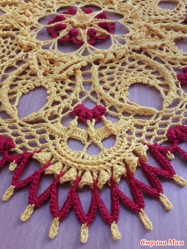 Ирина,здравствуйте.Очень шикарная у Вас салфеточка получилась,подскажите, пожалуйста, как Вы сделали чтобы пико получилось другим цветом? Вы под красной ниточкой протаскивали желтую?