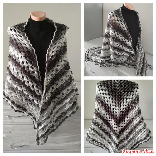 Шаль ручной работы,вязаная крючком.Серая,меланжевая.Мягкая ,тёплая,легкая,удобная в носке,хорошо стирается.Отличный подарок к любому празднику.Размер по краю 210см,170см,170м.Состав нити 10%мохер,10%шерсть,80%акрил.