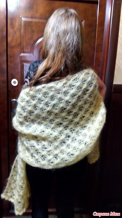 Шарф- палантин из итальянской пряжи:Rocee: 75% кид мохер, 25 лана шерсть + не навязчивый люрекс ( эффект мерцания) - очень мягкий, лёгкий, пушистый и тёплый. Цвет солнца зимой - сдержанно желтый, ближе к холодному ( не яичный)