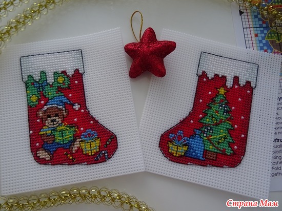 "Новогодний сапожок" (фирма Овен) на пластиковой канве, закончила, осталось собрать в игрушку.