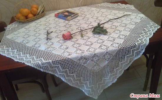 Комбинация ткань+крючок.Нитки х/б, 1.5м * 1.5м .Крючок 2.0