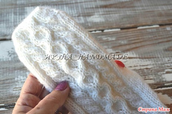 Немного об этом изделии. Для их изготовления я использовала пряжу ALIZE kid mohair Royal (62 % kid moher, 38 % полиамид; 500 м /50 г) и «Детский каприз» (50 % мериносовая шерсть, 50 % фибра; 225 м/ 50 г). Общий вес около 40 граммов. Спицы 2. Варежки удобно сидят на руке, как вторая кожа, не сползают, нигде не топорщатся. Набирала 44 петли, до узора, потом добавляла на узор 4. Мысок сшивала трикотажным швом.Описание здесь https://www.irena-handmade.ru/varezhki-zimnyaya-rapsodiya/