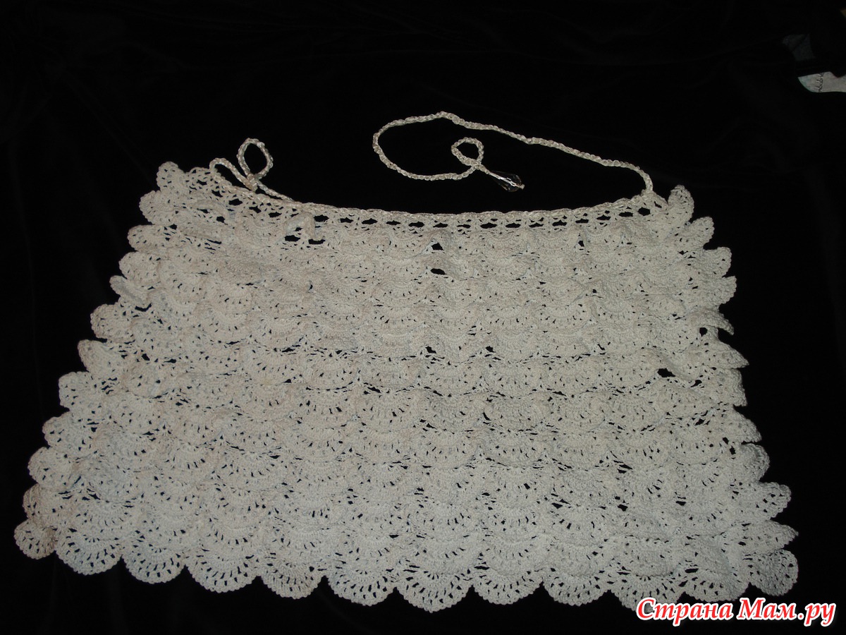 связала по схеме (см. след. фото) крючками от 0,5 до 2,5 (чем больше крючков, тем лучше), связала цепочку из в.п. из атласной ленты, на концах закрепила бусины
