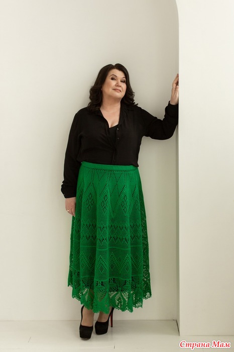 Юбка зелёная, пряжа Анна 16, расход 800г, размер 58-60. Кр. 1.5 кловер