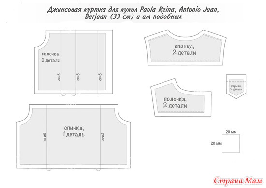 Выкройка джинсовой пиджак для куклы Paola Reina