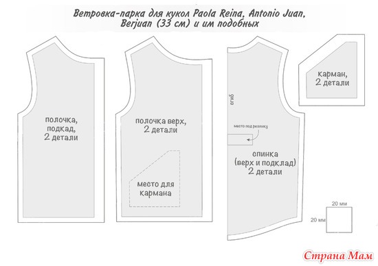 Выкройка ветровки-парки для куклы Paola Reina