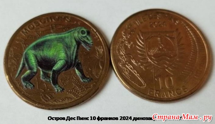 Остров Дес Пинс 10 франков 2024 динозавр МОСХОПС