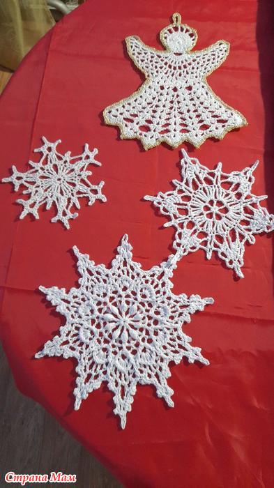 Тэги: вязание крючок салфетки мини снежинки ангел, салфетки