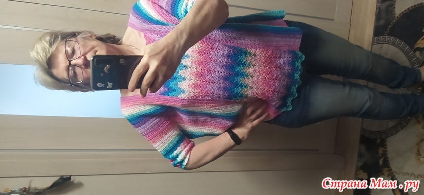 Тэги: Разноцветный топ крючком со вставкой зигзаг