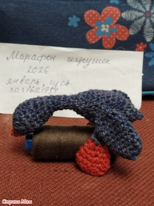 Гусик связан из ириса в 2 нити (красный цвет) и рассказовской полушерсти. Крючок №2