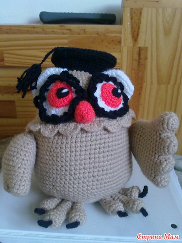 Здорово Вы мне идейку подкинули У меня дочка заканчивает колледж в этом году и символом его является сова! Вот может и подарить ей такую игрушку? Не могли бы Вы поделиться описанием или хотя бы расскажите как Вы ее вязали? Спасибо