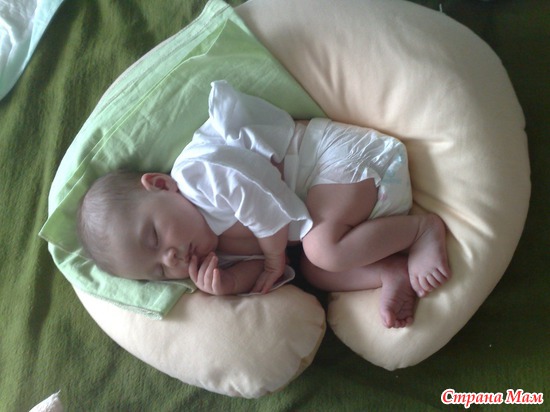 Это не кроватка для сна, это обычная подушка для кормления, просто доча у меня так случайно иногда засыпала и я ее подворачивала "гнездышком". Подушка приспосабливается под форму тела, но вот так целиком на ней малышка у меня помещалась месяцев до 2, не больше.