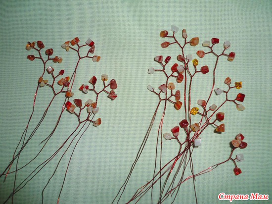 Мелкую кам. крошку использую так, на проволоку нанизываю 3 мелких камешка, скручиваю, затем большой камешек и.т.д. на фото видно как это делается.