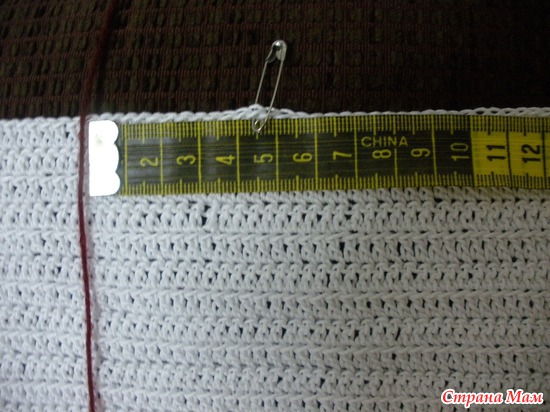 От контрастной нити отмерять 4,5 сантиметра и прикрепить булавочку.