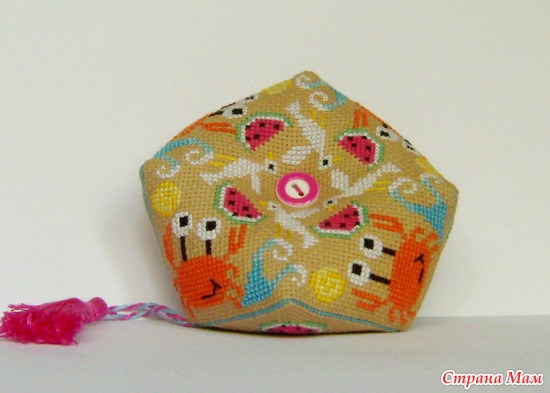 канва Аида 18 крашенная чаем, нитки Гамма, ДМС, Киров, Чехия. Кисть и шнурок сделаны из мулине Чехия. Пуговки.
