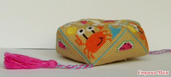 канва Аида 18 крашенная чаем, нитки Гамма, ДМС, Киров, Чехия. Кисть и шнурок сделаны из мулине Чехия. Пуговки.