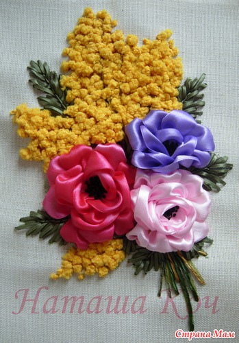 Аромат пьянящий ветреной мимозы ... Вышивка лентами