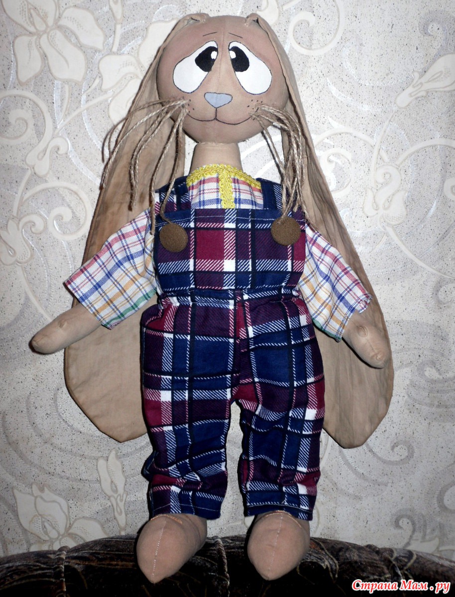 Это комбинированый зай с разных выкроек. Я уже скопировала у девочек с Джулии. Там был бум на таких зайчих, а одна мастер сшила пацана, я уже повторила.