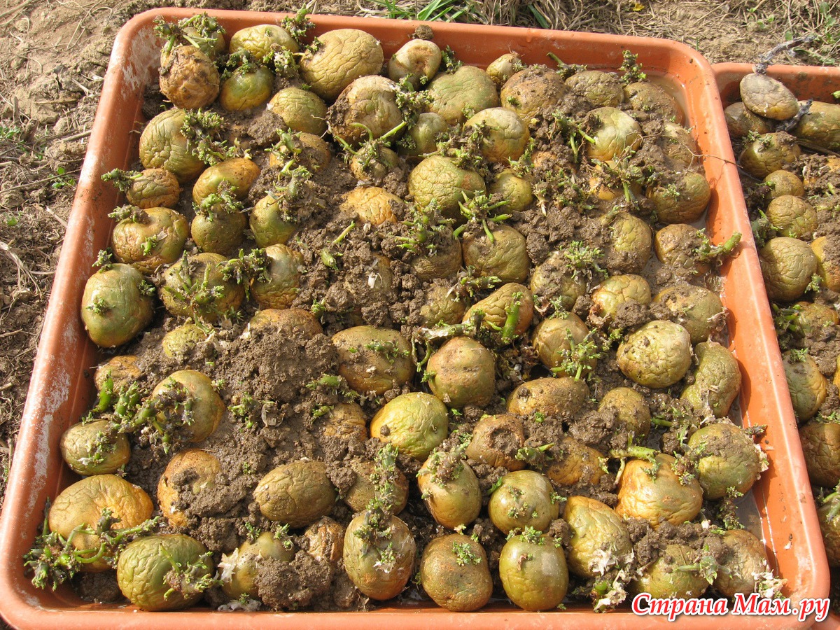 Мы хотели посадить раннюю картошку. Для поздней корни проращивать нет смысла - перепутаются, а потом оборвутся.
