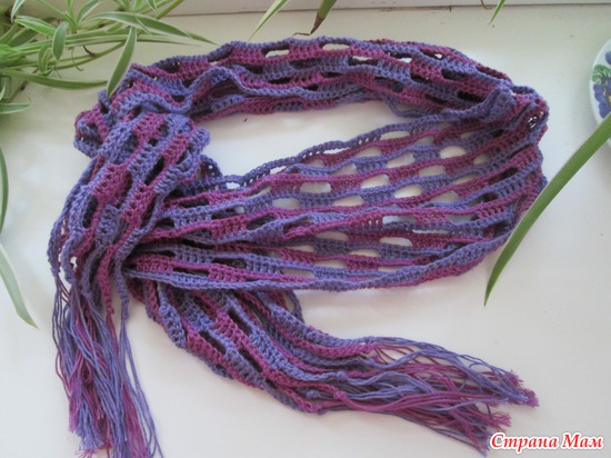 Стильный шарф , украсит и придаст очарование любому наряду . Нежный , приятный шарф связан из пряжи Bamboo fine (Alize) 100% бамбук.
