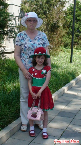 Очень хотелось мне связать это популярное платье для своей внученьки (впервые вязала платье), начала его ещё в марте, но попала в больницу, а в апреле нужно было лететь в Америку, там-то я его и довязывала, благо модель была рядышком... И вот мы его выгуляли, а заодно и мою шляпку.Конечно все обращали на нас внимание, а если попадались знакомые то внучка всем говорила "это моя русская бабушка мне связала", я почти не знаю языка, но что означает поднятый вверх палец понимаю... А как вам моё первое творение крючком???...