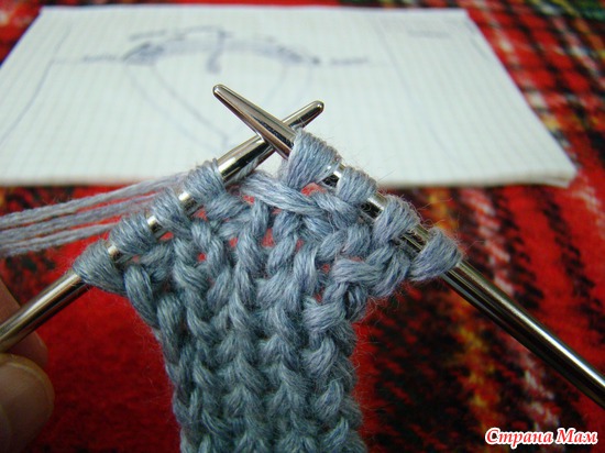 провязали три петельки, обвили следующую лицевую петлю нитью, развернулись ...