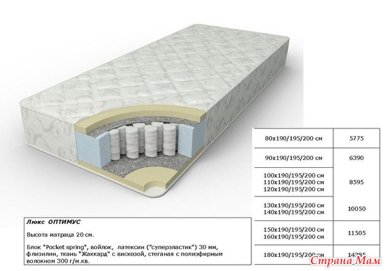 Ортопедический матрас Серии Люкс — Оптимус комфортный матрас средней жесткости. В качестве наполнителя в матрасе используется «Суперэластик» (искусственный латекс) — гипоаллергенный материал. «Суперэластик» придает матрасу необходимую упругость и эластичность.