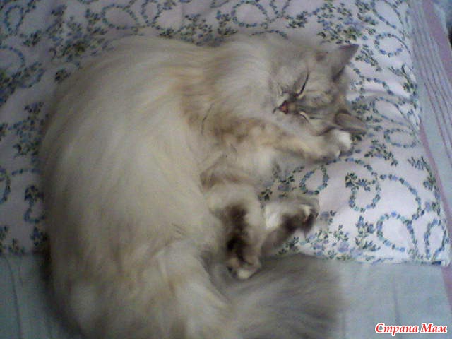 Даже не заметила как подкралась и всю подушку заняла