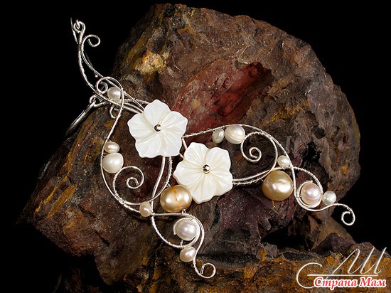 Серьги "Волнующая нежность" с жемчугом и резным перламутром.