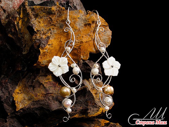 Серьги "Волнующая нежность" с жемчугом и резным перламутром.