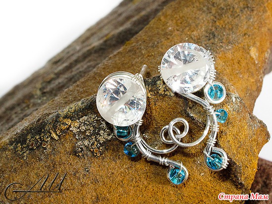 Сережки-гвоздики по мотивам работы "Водяные мотыльки"