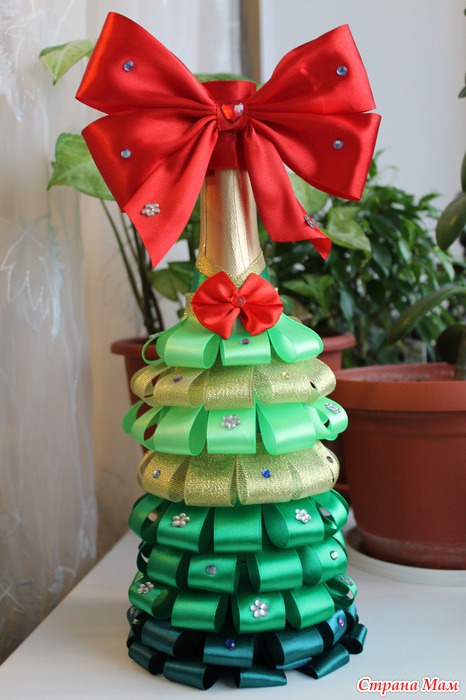 Тэги: оформление шампанского, бант, елочка, Новый год