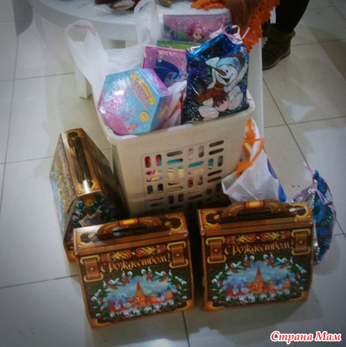 Подарки уже не помещались в нее, пришлось выстраивать их на пол )))