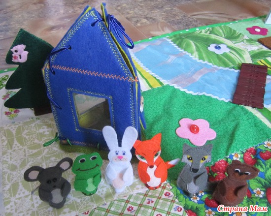 Каждая стенка домика из двух слоев жесткого фетра толщиной 2 мм. Получается толщина каждой стенки 4 мм, так что стоят отлично, как деревянные домики.
