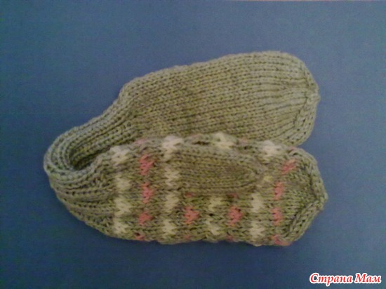 тепленькие двойные рукавички с орнаментом, связанные из пуха кенгуру серая нить, розовая и белая козий пух, 500 руб