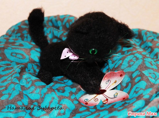 Котенок Мося. Ласковая, милая и игривая малышка)))))) Пряжа ЛТС, крючок 1,3, лента, фурнитура, леска. Проволочный каркас!