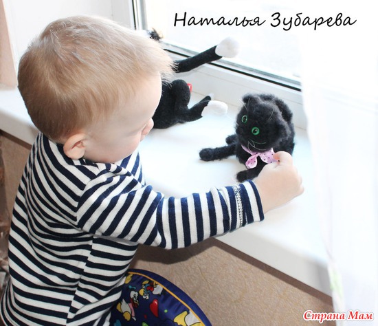 Котенок Мося. Ласковая, милая и игривая малышка)))))) Пряжа ЛТС, крючок 1,3, лента, фурнитура, леска. Проволочный каркас!