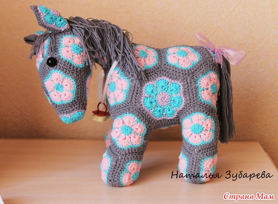 Добродушная и романтичная лошадка Лола! В длину 31 см.,в высоту 27 см (в холке). Выполнена в технике "Африканский цветок", Пряжа хлопок, крючок 1,75.