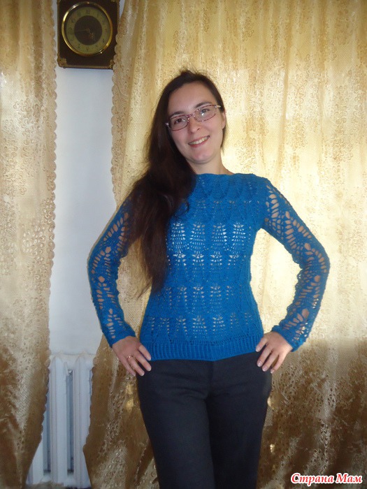 Классный пуловер получился!! А как рукава вязала? С прибавками кверху или ровно? Мне очень нравится, как на тебе сидит, а я мучаюсь с рукавами