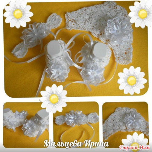 Тэги: чепчик, пинетки, повязка, для девочки, крючком
