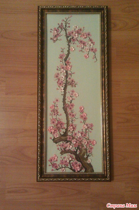 Вышивала моя дочь крестиком, а я добавила ленточки