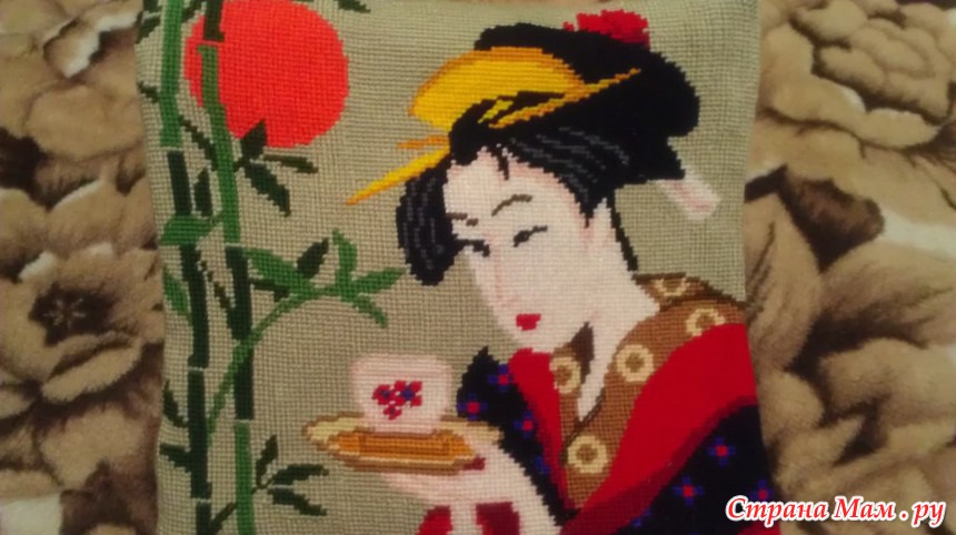 наволочка на подушечку вышитая гобеленовым швом