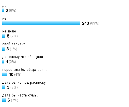девочки... пару недель назад встретилась с подругой... она говорит... Галь ты же должна за дочку денег получить... я ну да как документы оформлю где то через месяц полтора... она мне а ты не могла бы моей маме в долг тысяч 5 дать..??? я говорю ну я хотела деткам на зиму вещи купить... она да ты не переживай мама съездиет на 2 месяца поработает и привезёт тебе отдаст... и хотя знаю что они долги плохо отдают согласилась... а вот ходила к ней в гости... Читать далее»