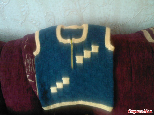 Спасибо вам, девочки за стимул. Благодаря Стране Мам я вспомнила, что когда-то тоже могла вязать."А почему бы и нет",-подумала я и решила вспомнить "как это было". и только я подумала, как муж начал канючить:"Надо носки мне, сходи-ка купи у бабулек на рынке шерстянные" Скромно предлагаю, что может и я на, что сгожусь."ТЫ!!!???"-его удивлению не было предела. Вот не знаю, то ли обидеться, что считает криворучкой, то ли промолчать. Решила молча сделать подарок на Новый год-прыгал до потолка, ходит, не снимая, правда спасибо забыл сказать, но это наверно от радости. Потом я быстро наваяла носков маме, себе и сынульке и взялась за шапочку и жилетку для моего зайки. Долго думала, выставить на ваш строгий суд или нет. Решила-покажу. Строго не судите, я ведь совершенный делитант, но может найдется и моим вязалкам место.